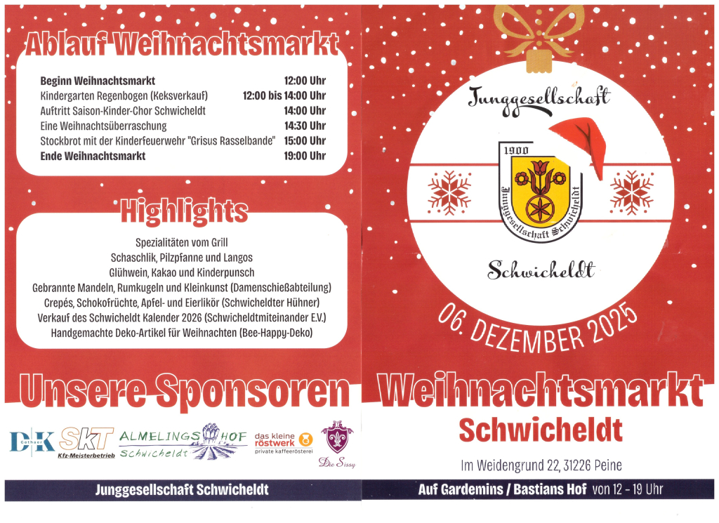Wir freuen uns, dass Sie auf unsere Internetseite aufmerksam geworden sind. Unser erklärtes Ziel der Seite ist über unseren Heimatort Schwicheldt in der Stadt Peine zu informieren. Ob aktuelle Informationen, Veranstaltungen, Hinweise zu Handwerkern, Unternehmen, Einkaufsmöglichkeiten, hier erhalten Sie alles Wissenswerte kompakt zusammengetragen. (Für aktuelle Hinweise bitte auf dieser Seite nach unten scrollen.)