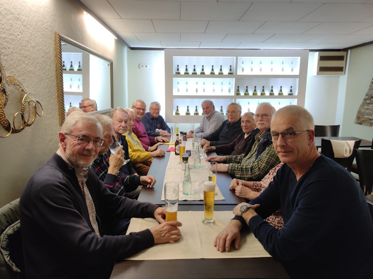 Das 150-jährige Jubiläum hätte der MGV 2024 feiern können, wenn er nicht 2016 notgedrungen seine Tätigkeit eingestellt hätte. Dennoch, die ehemaligen Aktiven ließen es sich nicht nehmen, nach etlichen Jahren aus besonderem Anlass mal wieder zu einem Sängerstammtisch zusammenzukommen, um bei warmem Essen und kühlen Getränken Gedanken und Erinnerungen auszutauschen.